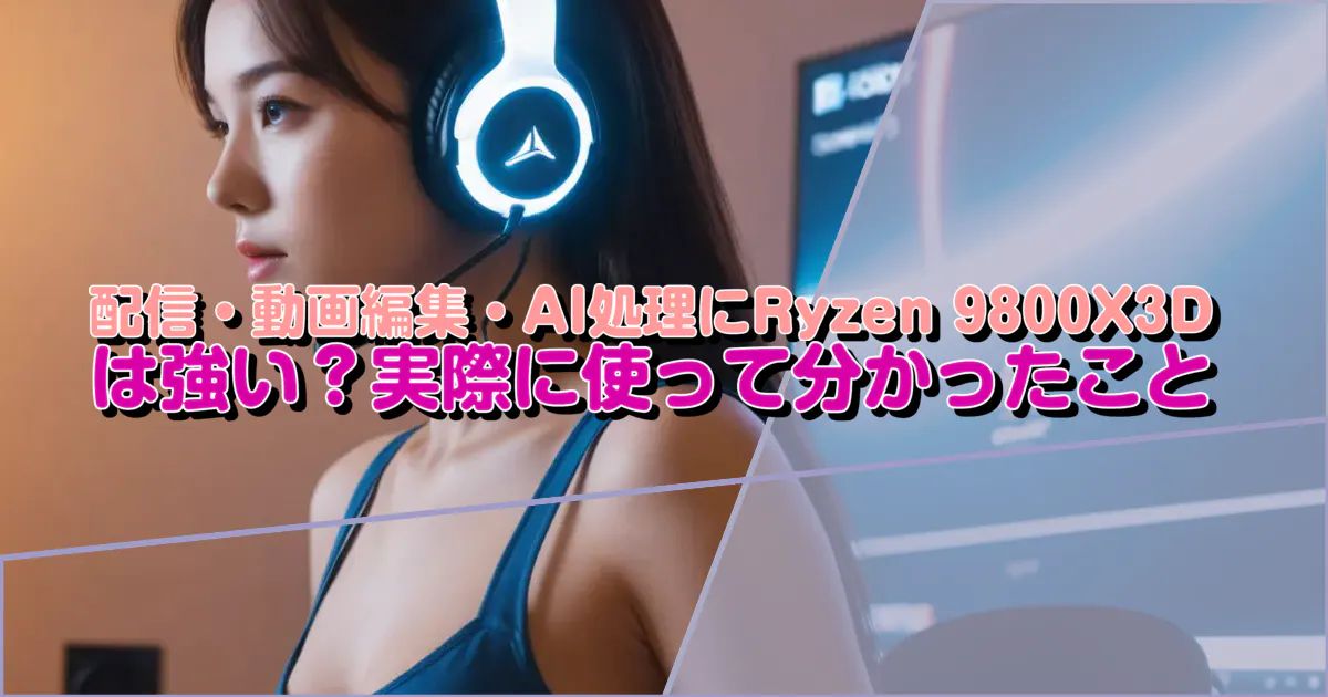 そんな私が今回試したRyzen 9800X3Dは、正直なところ想像以上に余裕があり、配信も含めたゲーム環境を安心して任せられる存在でした。